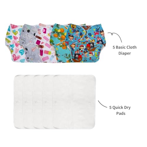 SuperBottoms BASIC Pack of 5 Freesize Adjustable Washable and Reusable Cloth Diaper for babies 0-3 Years | One Size Adjustable Diapers (Pack of 5 diapers+ 5 inserts) Assorted prints