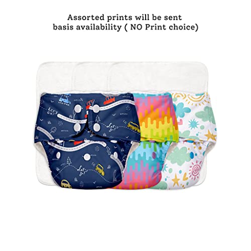 SuperBottoms BASIC Pack of 6 Side Leakage Proof Reusable Cloth Diaper with Quick Dry UltraThin pads|Freesize, Rash Free, for Kids 0-3 Yrs|Stay Dry & Lasts up to 3Hrs|3 Shell + 3 Pads - Assorted