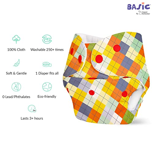 SuperBottoms BASIC Reusable Cloth Diaper for babies 0-3 Years | Freesize Adjustable Cloth Diaper for babies | NEW Quick Dry UltraThin pads | Trim Fitting, Dries 2times faster | Peach Geometric
