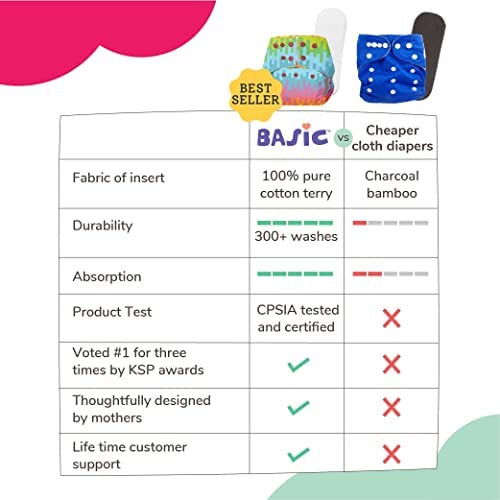 HomeBabyDiaperingCloth DiapersSuperBottoms BASIC Cloth Diapers for Babies l New Trimmer Version l Adjustable & Washable Cotton Diaper l Rash Free Reusable Diaper for New Born Baby l Comes with a Quick Dry Pad l 3M - 3Y | 5-17kgs
