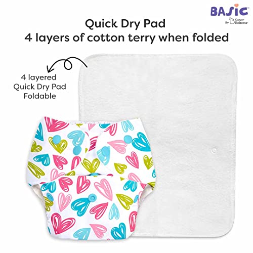 SuperBottoms BASIC Reusable Cloth Diaper with NEW Quick Dry UltraThin pads | 100% cloth Freesize Diapers for baby 0-3 Yrs |Stay Dry & Lasts up to 3Hrs | Trim Fitting Dries 2times faster | Hearts