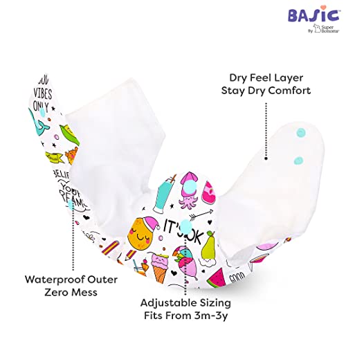 SuperBottoms BASIC Reusable Cloth Diaper with NEW Quick Dry UltraThin pads | 100% cloth Freesize, washable Diapers for baby 0-3 Yrs |Stay Dry & Lasts up to 3Hrs | Trim Fitting, Dries 2times faster
