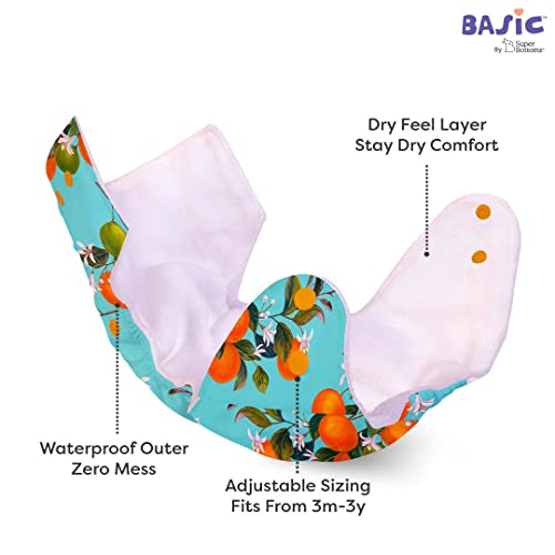 SuperBottoms BASIC Reusable Cloth Diaper with Quick Dry UltraThin pads | 100% cloth Freesize, washable Diapers for baby 0-3 Yrs |Stay Dry & Lasts up to 3Hrs | Trim Fitting | Peaches