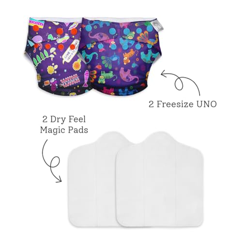 SuperBottoms Cloth Diapers for babies - Cloth Diaper Combo Pack of 2 Freesize UNO- New Version| Reusable Cloth Diapers for babies 0 to 3 years | With 2 organic cotton inserts/pads