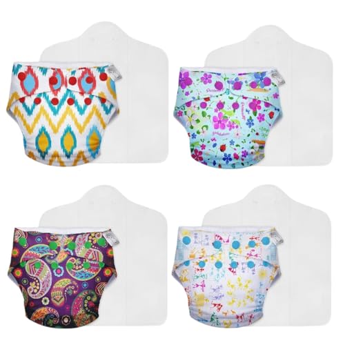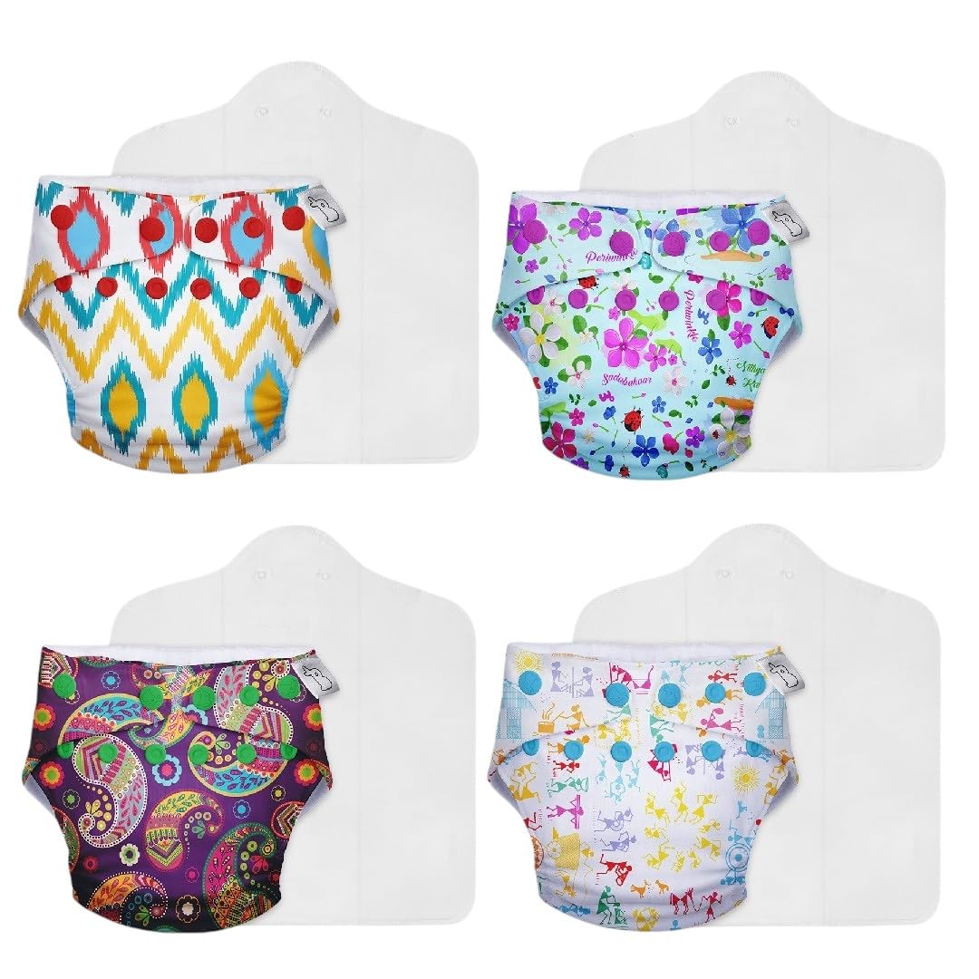 SuperBottoms Cloth Diapers for babies - Cloth Diaper Combo Pack of 4 Freesize UNO- New Version| Reusable Cloth Diapers for babies 3M to 3Y | With 4 organic cotton inserts/pads