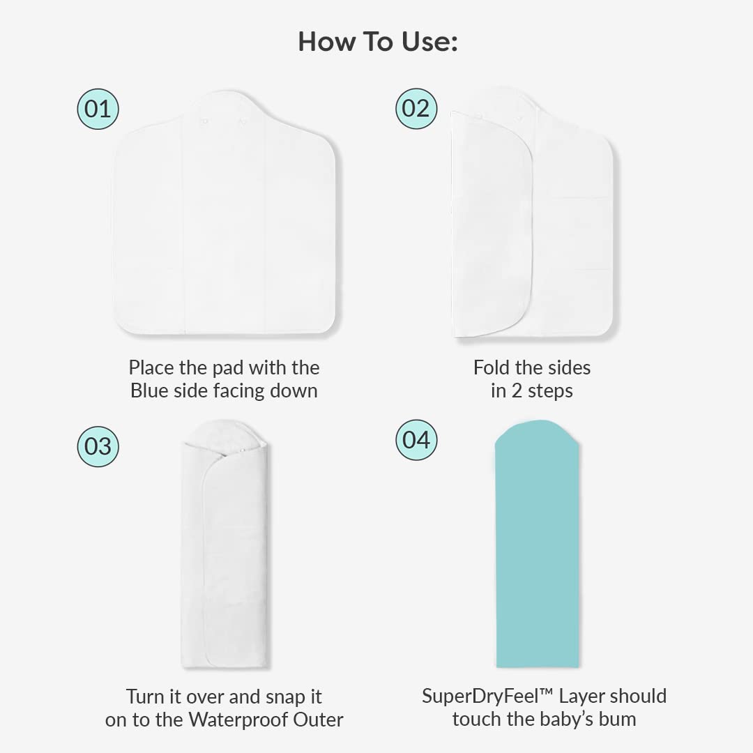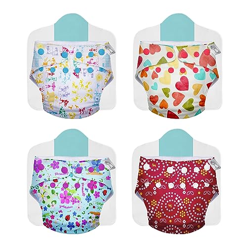 SuperBottoms Cloth Diapers for babies - Cloth Diaper Combo Pack of 4 Freesize UNO| Reusable Cloth Diapers for babies 3M to 3Y | With 4 organic cotton inserts/pads