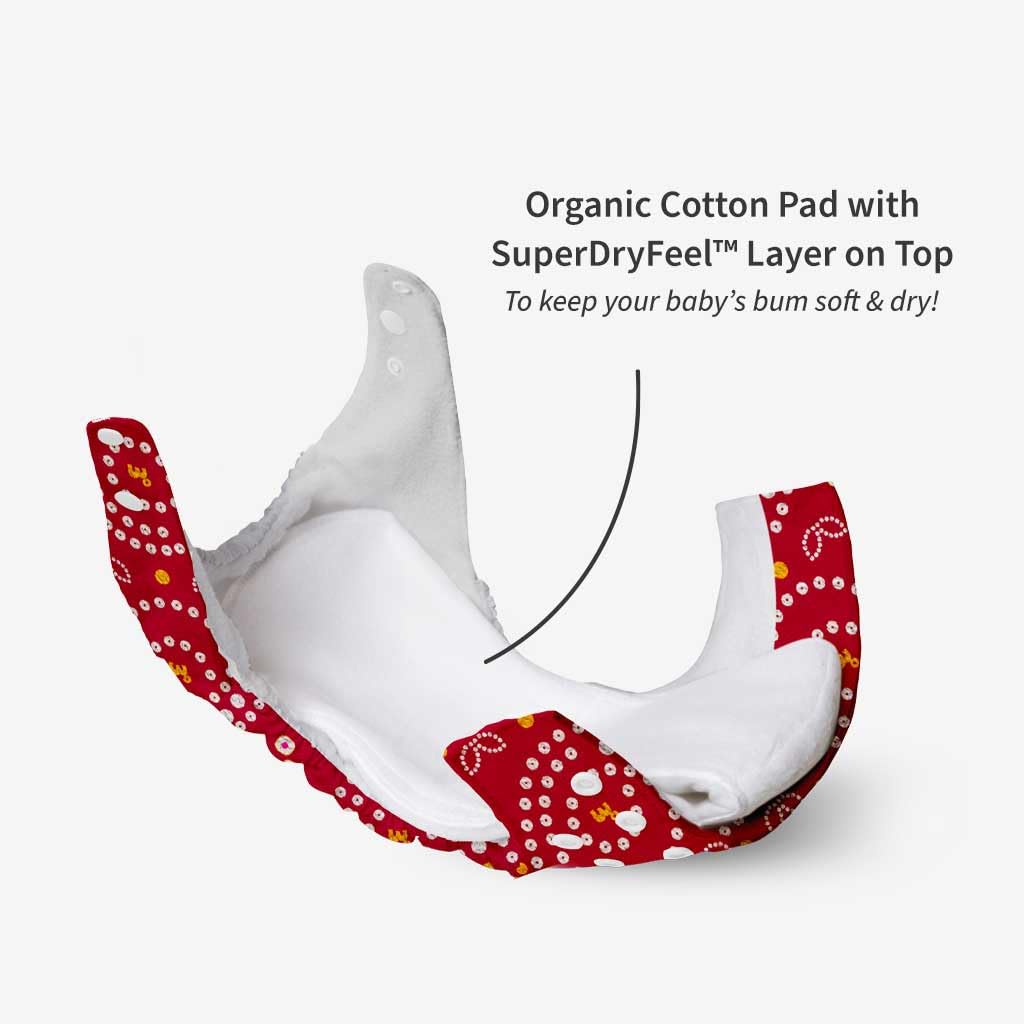 SKIN-FRIENDLY ECO-FRIENDLY & POCKET-FRIENDLY: SuperBottoms Freesize UNO cloth diaper is made from 100% Organic Cotton Pads (diaper inserts) with SuperDryFeel Layer that keeps babys bums dry and helps in reducing rashes significantly. It is a washable and