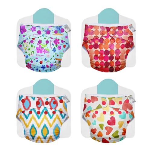 SuperBottoms Cloth Diapers for babies - Cloth Diaper Combo Pack of 4 Freesize UNO| Reusable Cloth Diapers for babies 3M to 3Y | With 4 organic cotton inserts/pads
