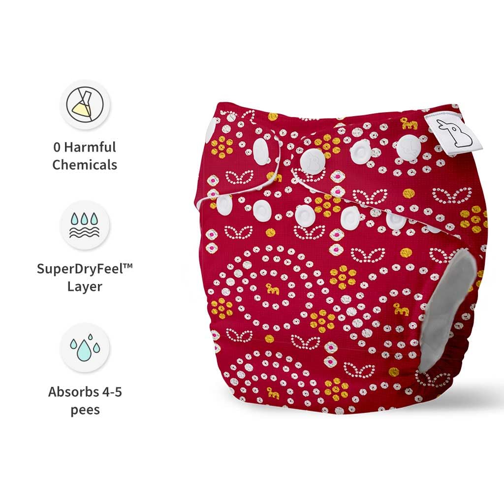 SuperBottoms Cloth Diapers for babies - Cloth Diaper Combo Pack of 5 Freesize UNO- New Version| Reusable Cloth Diapers for babies 3M to 3Y | With 5 organic cotton inserts/pads