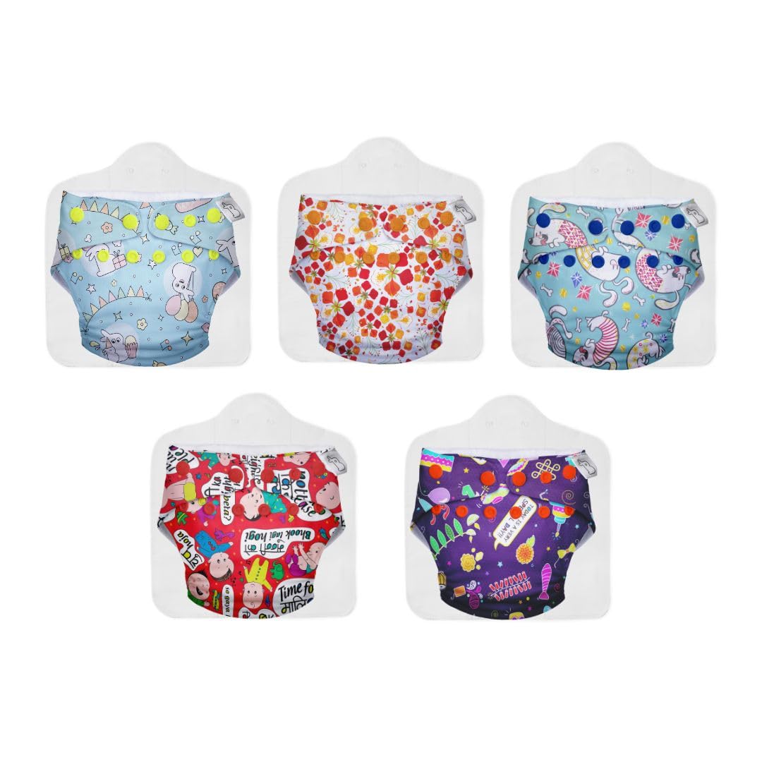 SuperBottoms Cloth Diapers for babies - Cloth Diaper Combo Pack of 5 Freesize UNO| Reusable Cloth Diapers for babies 3M to 3Y | With 5 organic cotton inserts/pads