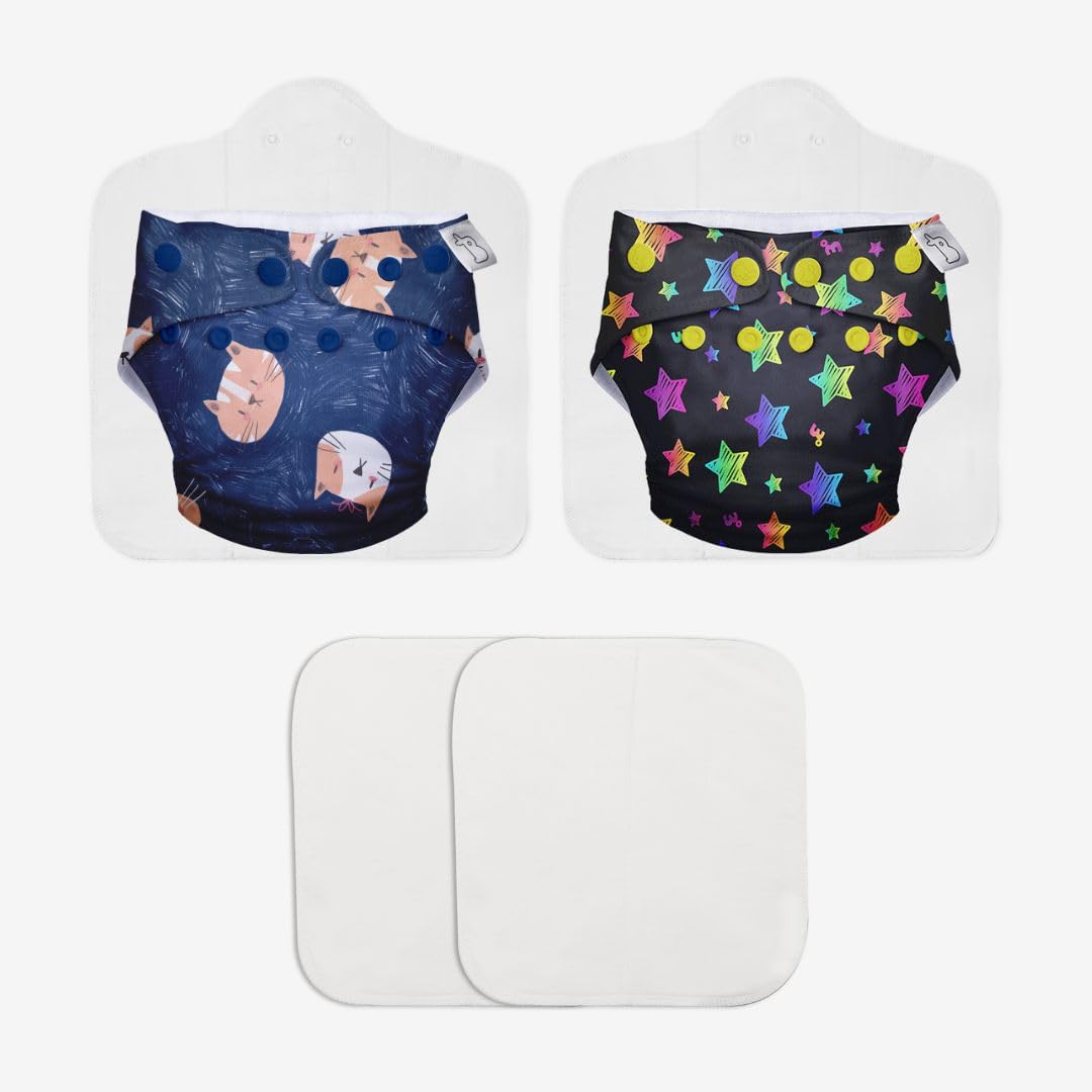SuperBottoms Combo Pack of 4 (2 Shell + 2 Insert)Freesize UNO-Reusable waterproof Adjustable cloth diaper for babies from 5-17kgs cloth diapers with Dry feel Organic cotton Pad & booster Pad-Option 1