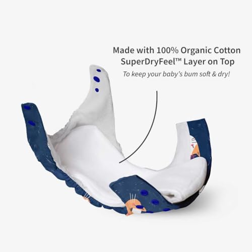 SuperBottoms Combo Pack of 6 (2 Shell + 2 Insert + 2 Booster)Freesize UNO-Reusable waterproof Adjustable cloth diaper for babies from 5-17kgs cloth diapers with Dry feel Organic cotton Pad & booster Pad-Option 1