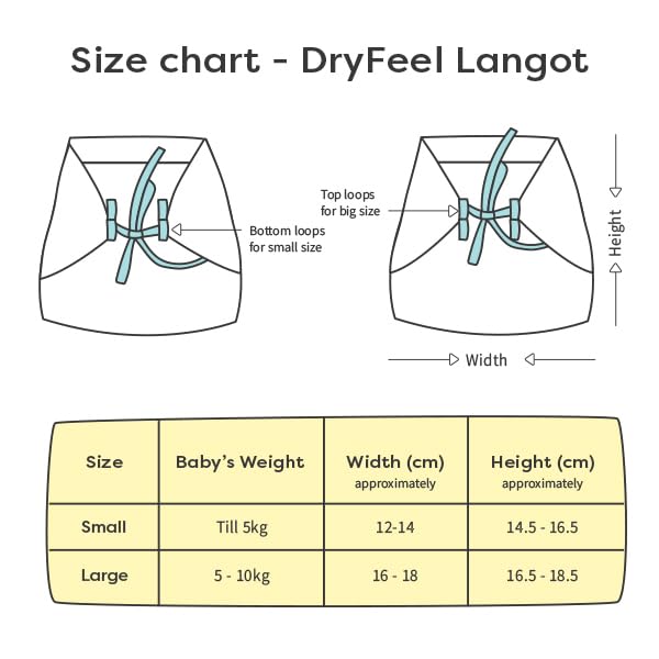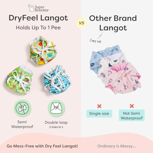 2 Sizes In 1: SuperBottoms Dry Feel Langot features a Double Loop offering two sizing options within a single langot for a better fit! As your baby grows you can effortlessly transition to the next size all while saving money. No need to buy a new langot