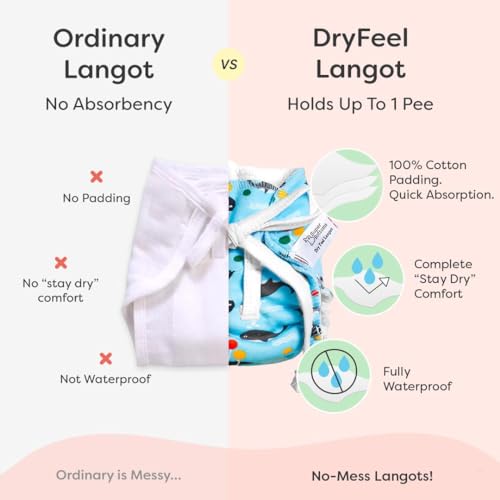 • Content: Pack of 6 DryFeel Langot. Fully Waterproof: Keeps your newborn baby dry & comfortable with a 100% waterproof outer layer preventing any mess.