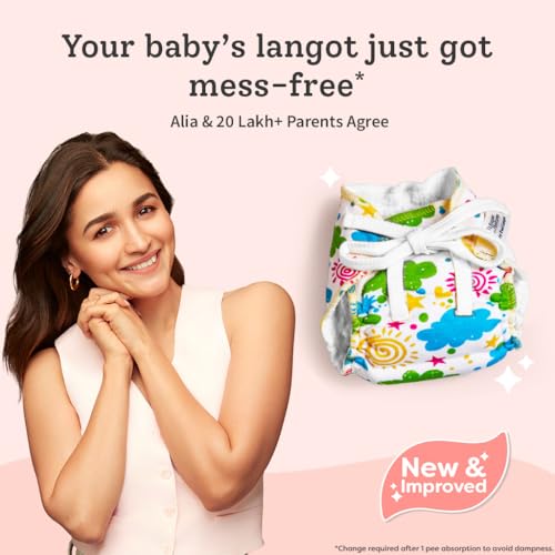 SuperBottoms First Love DryFeel Langot¢ for Newborn Baby | No Mess Langot | Premium Cotton Padding (No Sponge) | Ultra-Soft | Mess-Free Diaper-Free Time | 0-9M | (Printed Pack of 6 Large)