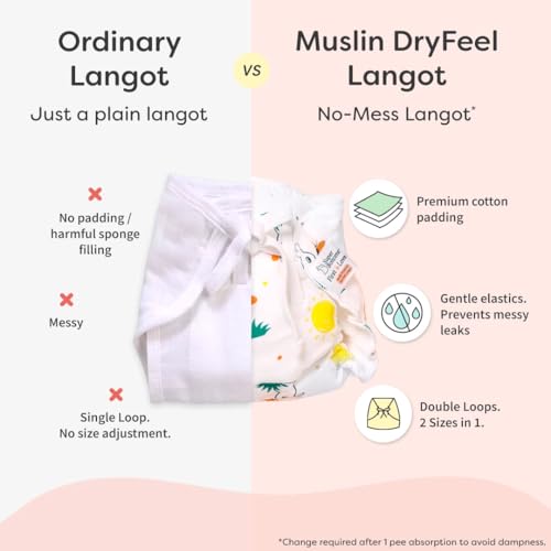 SuperBottoms First Love Muslin DryFeel Langot | Pack of 6 |Softest Breathable & Gentlest langot for Baby with Premium Muslin Layer | 100% Waterproof |5 to 9 months old | size - Large (5kg - 10kg)