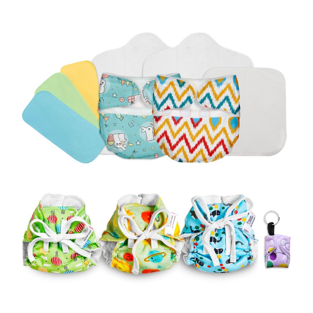 • CONTENTS: This gift pack contains 1 Newborn UNO Washable Cloth Diaper (1 Waterproof Outer + 1 Dry Feel Magic Pad (Cloth diaper insert) with SuperDryFeel Layer) 1 Dry Feel Langot (organic cotton padded nappy) (no print choice) & 1 Keychain. The adjustable
