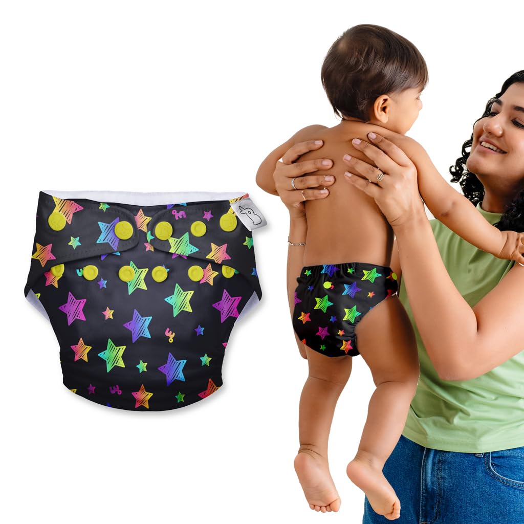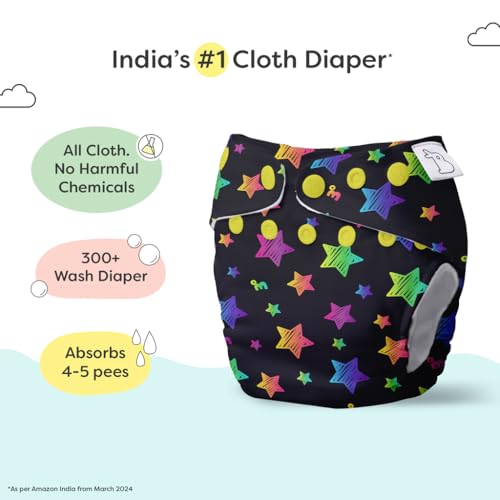 SuperBottoms NEW UNO Freesize Cloth Diaper | Cloth diaper for babies 3M to 3Y | Washable & Reusable cloth diaper | Comes with cloth diaper insert | 1 Diaper and 1 Organic cotton Soaker-Assorted