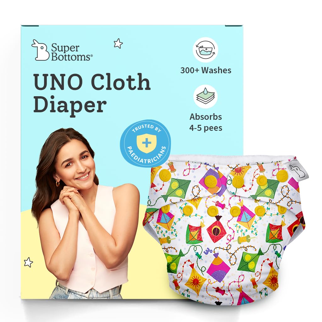 HomeBabyDiaperingCloth DiapersSuperBottoms NEW UNO Freesize Cloth Diaper | Cloth diaper for babies 3M to 3Y | Washable & Reusable cloth diaper | Comes with cloth diaper insert | 1 Diaper and 1 Organic cotton Soaker