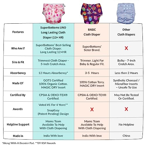 HomeBabyDiaperingCloth DiapersSuperbottoms NEW UNO Freesize Cloth Diaper Set of 2| Cloth diaper for babies 3M to 3Y | Washable & Reusable cloth diaper | Comes with cloth diaper insert | 2 Diaper and 2 Organic cotton Soaker