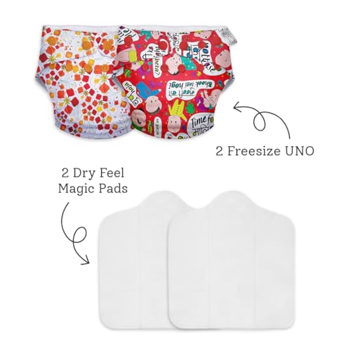 Superbottoms NEW UNO Freesize Cloth Diaper Set of 2| Cloth diaper for babies 3M to 3Y | Washable & Reusable cloth diaper | Comes with cloth diaper insert | 2 Diaper and 2 Organic cotton Soaker¦