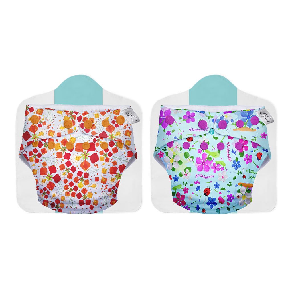 Superbottoms NEW UNO Freesize Cloth Diaper Set of 2| Cloth diaper for babies 3M to 3Y | Washable & Reusable cloth diaper | Comes with cloth diaper insert | 2 Diaper and 2 Organic cotton Soaker