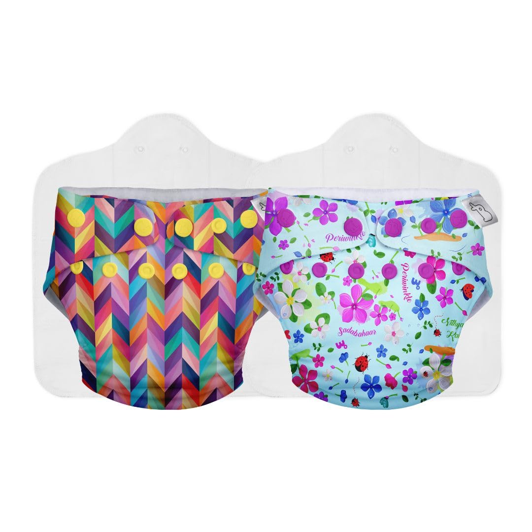 Superbottoms NEW UNO Freesize Cloth Diaper Set of 2| Cloth diaper for babies 3M to 3Y | Washable & Reusable cloth diaper | Comes with cloth diaper insert | 2 Diaper and 2 Organic cotton Soaker
