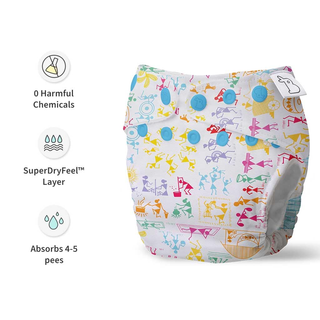 Superbottoms NEW UNO Freesize Cloth Diaper Set of 3| Cloth diaper for babies 3M to 3Y | Washable & Reusable cloth diaper | Comes with cloth diaper insert | 3 Diaper and 3 Organic cotton Soaker