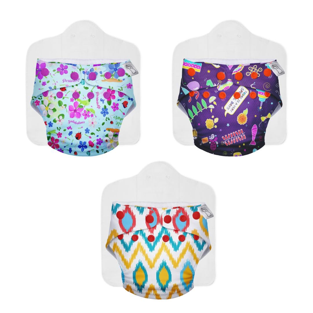 Superbottoms NEW UNO Freesize Cloth Diaper Set of 3| Cloth diaper for babies 3M to 3Y | Washable & Reusable cloth diaper | Comes with cloth diaper insert | 3 Diaper and 3 Organic cotton Soaker.