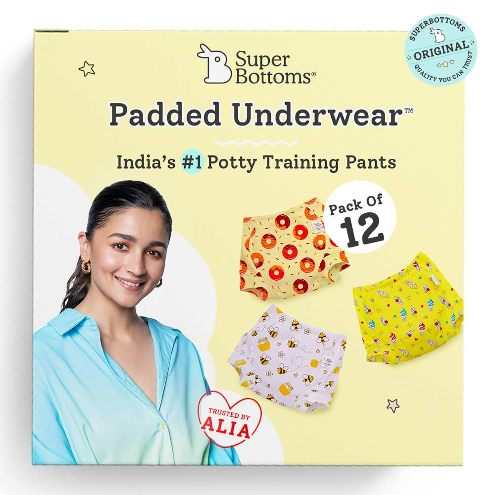 superbottoms Padded Underwear¢ | for Potty Training & Mess-Free Diaper-Free time | Prevents Pee Puddles | 3 Layers of Premium Cotton Padding (No Sponge) | Pull-up Style Potty Trainers (Pack of 12)