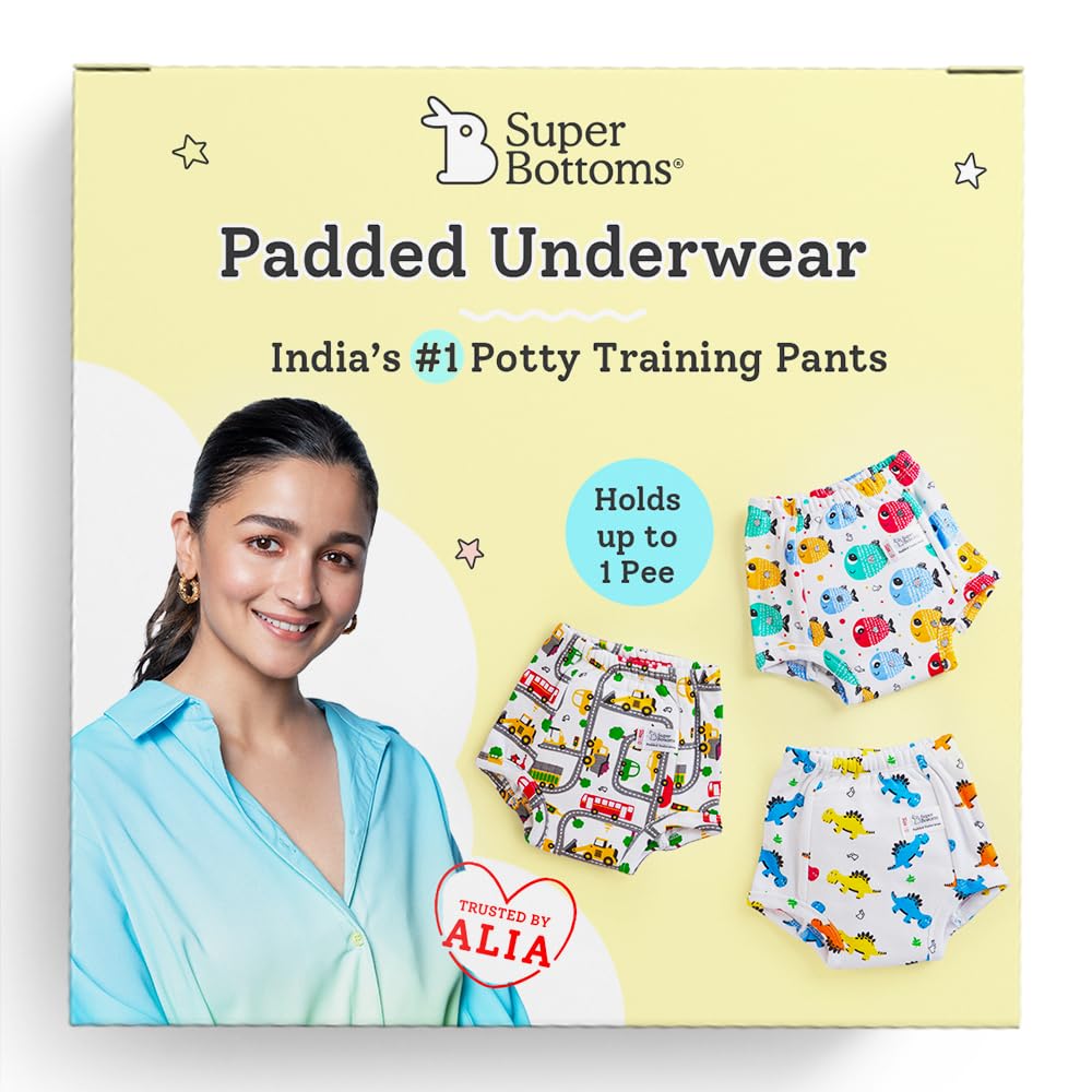 HomeBabyDiaperingCloth DiapersSuperBottoms Padded Underwear For Growing Babies/Toddlers|With 3 Layers Of Cotton Padding & Super DryFeel Layer| Pull-Up For Potty Training & Diaper-Free Time(Striking Whites, Size: 3, Pack of 3)