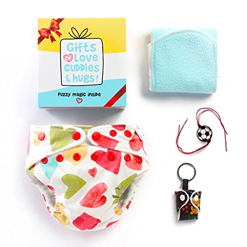 SuperBottoms Rakhi Gift for kids | Combo pack of 1 Freesize UNO 1 Keychain and 1 Eco-friendly Rakhi for kids| Reusable Cloth Diapers for babies 0 to 3 years| Raksha Bandhan gift for brother & sister