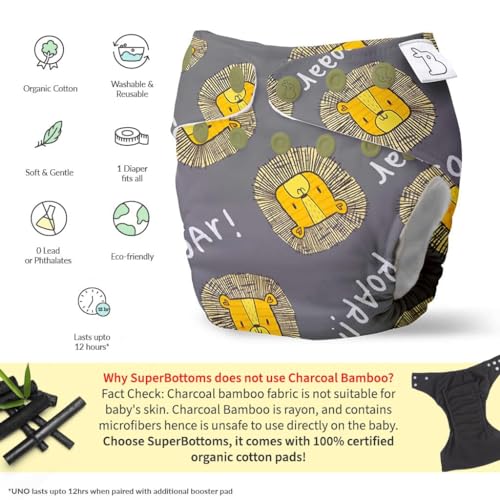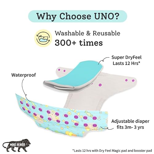 HomeBabyDiaperingCloth DiapersSuperBottoms Stash Builder Pack with 4 Freesize UNO- New version| Cloth diapers combo for babies from 3M to 3Y |Comes with 3 Fleece liners, 3 Booster Pads & 1 Very Heavy Wetter Pad