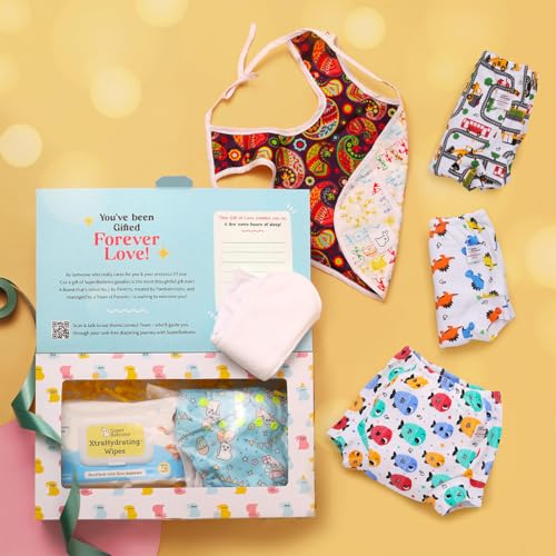 SuperBottoms Toddler Diapering Gift Pack | Perfect for 9 months to 3 years | Cloth Diapers | Potty Trainers | XtraHydrating Wipes | Waterproof Bibs | Gift Box for Growing Toddlers | Pack of 6 items
