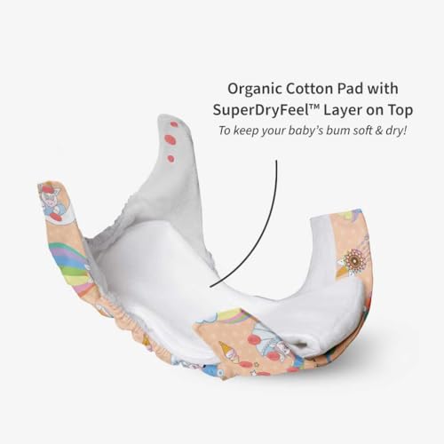 SuperBottoms UNO Freesize Cloth Diaper | Cloth diaper for babies 3M to 3Y | Washable & Reusable cloth diaper | Comes with cloth diaper inserts | 1 Organic cotton Soaker + 1 Booster | Unicorn