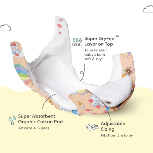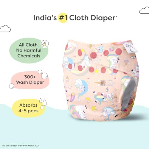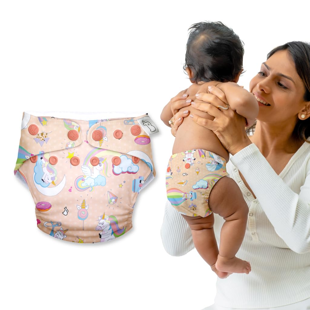 SuperBottoms UNO Freesize Cloth Diaper | Cloth diaper for babies 3M to 3Y | Washable & Reusable cloth diaper | Comes with cloth diaper inserts | 1 Organic cotton Soaker (Unicorn :))