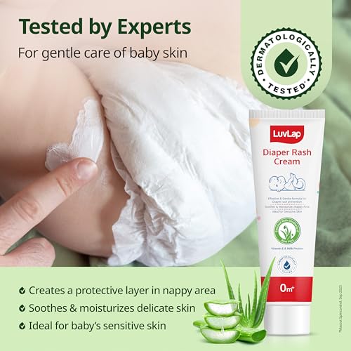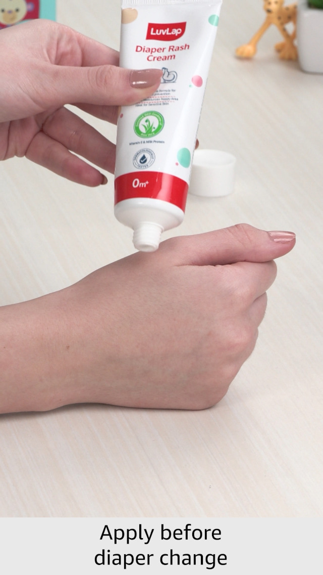Say hello to LuvLap Diaper Rash Cream which was developed with the sensitive skin of your baby in mind. Our cream is made with gentle safe ingredients that soothe and protect against diaper rash-related redness and irritation while moisturising and hydrating to avoid dryness and chafing. Dermatological testing has proven that our lotion is effective on all skin types. It is easy to use and creates a protective barrier over the diaper area. Our cream is available in a convenient travel size tube for rapid diaper changes while on the road. Made with love for your precious baby in India.