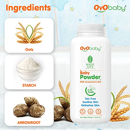 OYO BABY:- Talc Free baby powder for newborns absorbs excess moisture and keeps baby's skin comfortable and dry.