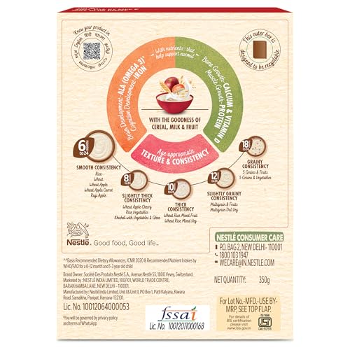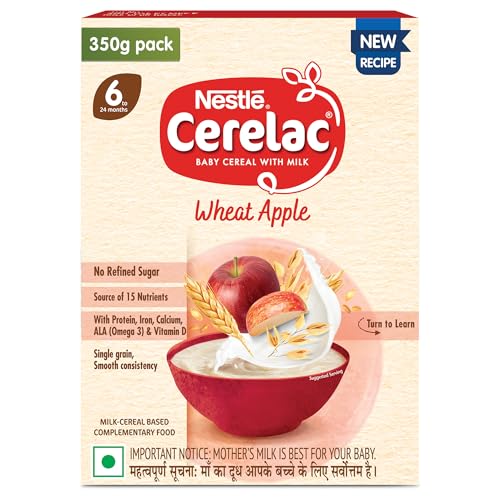 Nestle CERELAC Baby Cereal with Milk is a complementary baby food for infants from 6 to 24 months. It is also a source of 15 important nutrients including vitamins and minerals. With Protein Calcium ALA (Omega 3) & Vitamin D. This baby cereal is packed with the goodness of cereal milk and fruit. With 155 years of scientific expertise in infant nutrition Nestle develops infant nutrition products backed by evolving science and research. Innovation has been at the heart of Nestle since its beginning. Contains no Refined Sugar. Storage Instructions: Store unopened pack in a cool and dry place.After opening use the contents within 3 weeks or the expiry date whichever is earlier. Prolonged storage and exposure to air may result in infestation & off odors & taste. On opening transfer the contents of the pack along with the pouch into a clean airtight container. After each use close lid tightly and store in a cool dry and hygienic place.Important Notice: Motherâs milk is best for your baby. Warning/Caution : Careful and hygienic preparation of infant food is most essential for health. Do not use fewer scoops than directed since diluted feeding will not provide adequate nutrients needed by your infant.Do not use more scoops than directed since concentrated feed will not provide the water needed by your infant. Infant food shall be only used on the advice of a health worker as to the need for its use and the proper method of its use Safety warning: Infant food is not the sole source of nourishment of an infant. Boiled and cooled water shall be used to prepare this product and any leftover product must be discarded to reduce the risk of infection Use prepared feed within half an hour otherwise microbial deterioration may set in. Discard unused feed. The scoop provided with this pack should be thoroughly washed and dried before use Allergen note: Contains Wheat and Milk. May contain Barley and Oats.