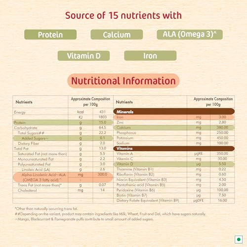Nestle CERELAC 5 Grains and Fruits with No Refined Sugar is a complementary baby food for infants from 18 to 24 months. It is also a source of 15 important nutrients including vitamins and minerals. With Protein Iron Calcium ALA (Omega 3) & Vitamin D. This baby food cereal is packed with the goodness of cereal milk and fruit. With 155 years of scientific expertise in infant nutrition Nestle develops infant nutrition products backed by evolving science and research. Innovation has been at the heart of Nestle since its beginning. Contains no Refined Sugar. Storage Instructions: Store unopened pack in a cool and dry place. After opening use the contents within 3 weeks or the expiry date whichever is earlier. Prolonged storage and exposure to air may result in infestation & off odors & taste. On opening transfer the contents of the pack along with the pouch into a clean airtight container. After each use close lid tightly and store in a cool dry and hygienic place. Important Notice: Motherâs milk is best for your baby. Warning/Caution : Careful and hygienic preparation of infant food is most essential for health. Do not use fewer scoops than directed since diluted feeding will not provide adequate nutrients needed by your infant. Do not use more scoops than directed since concentrated feed will not provide the water needed by your infant. Infant food shall be only used on the advice of a health worker as to the need for its use and the proper method of its use Safety warning: Infant food is not the sole source of nourishment of an infant. Boiled and cooled water shall be used to prepare this product and any leftover product must be discarded to reduce the risk of infection Use prepared feed within half an hour otherwise microbial deterioration may set in. Discard unused feed. The scoop provided with this pack should be thoroughly washed and dried before use Allergen note: Contains Wheat Milk Oats and Barley.