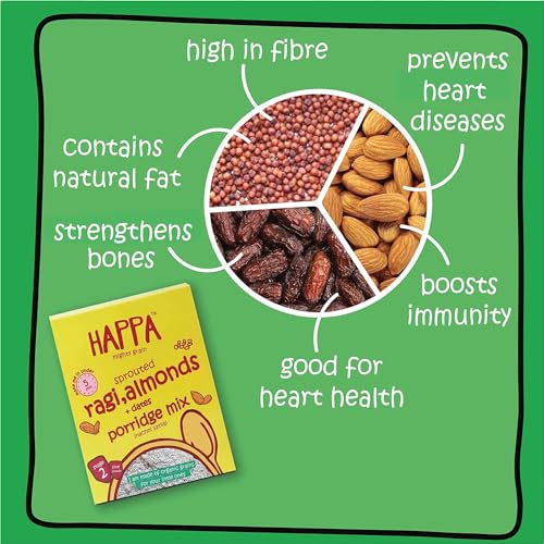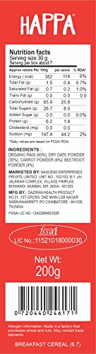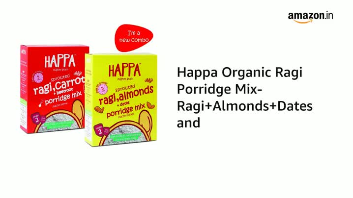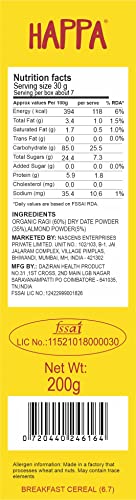 Happa Organic Cereal | Sprouted Ragi - Ragi and Ragi - Carrot - Beetroot | Calcium Booster - Bone Strength| Organic Khichdi | No Added Salt, Sugar or Milk | No preservatives | Pack of 2 (200gm x 2) (400 G, Ragi + Almond + Dates)