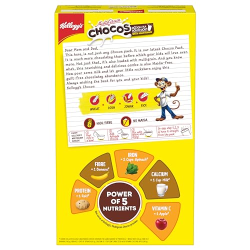Kellogg's Chocos has the goodness of whole wheat. Each serving of 30g Kellogg's Chocos has Protein and Fibre equal to that of 1 wheat roti of 30g.