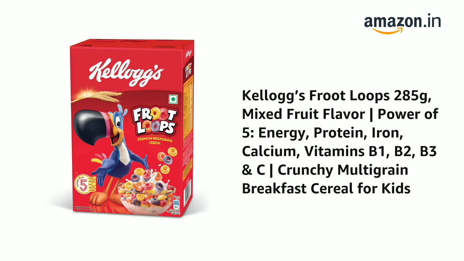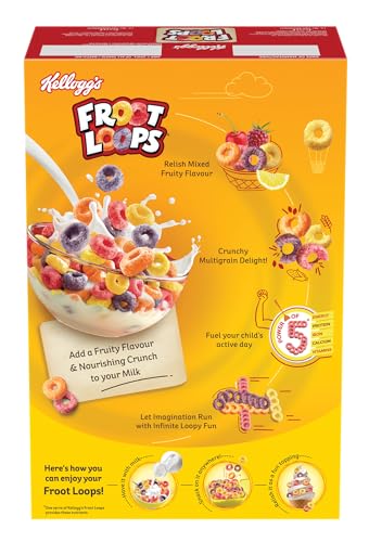 Tired of watching your kid stare at their boring glass of milk every morning? Add some Frooty adventure to their day with New Kellogg's Froot Loops - a breakfast liked world over now in India. Relish the Frootlycious & Crunchylicious excitement on their face as they bite into these colourful little circles. What's more is that Froot Loops pack a nourishing punch of multigrain (Oats Wheat and Corn) in every bite while giving your kid the energy to fuel their active day.