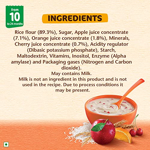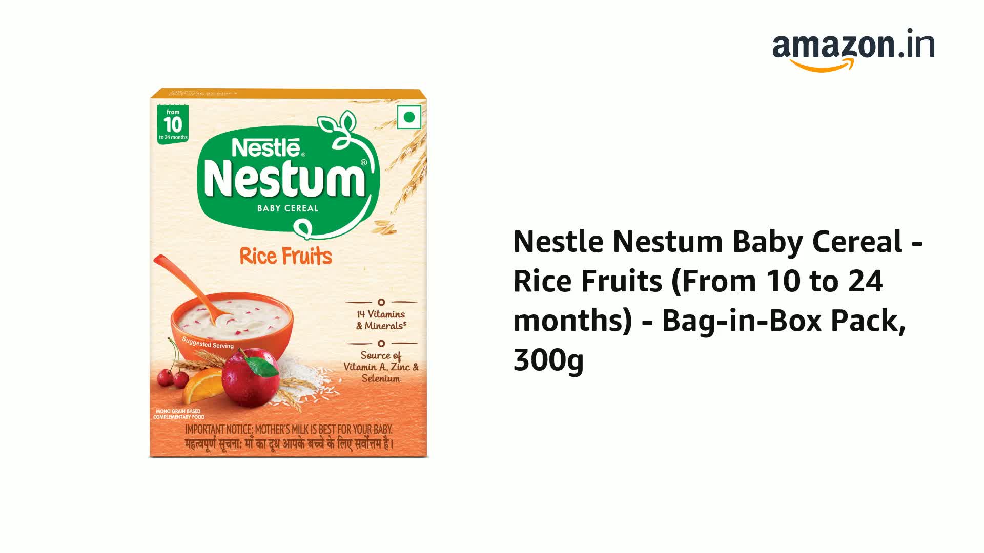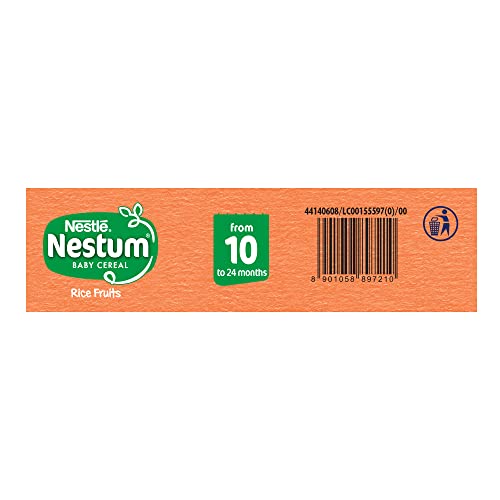 Nestle NESTUM Baby Cereal (Rice Fruits) is a processed mono grain based complimentary food for babies from 10 months up to 24. . This baby growth food is a source of 14 nutrients including vitamins and minerals and contains Vitamin A Zinc Iron Selenium and Vitamin C. Nestle NESTUM is free from preservatives added colours and flavours.Nestle develops infant nutrition products backed by evolving science and research. Innovation has been at the heart of Nestle since its beginning. Optimal Preparation: Careful and hygienic preparation of Infant food is most essential for health. Do not use fewer scoops than directed since diluted feeding will not provide adequate nutrients needed by your infant. Do not use more scoops than directed since concentrated feed will not provide the water needed by your infant. Storage: After opening the pack the contents should immediately be transferred to an empty clean and dry airtight container. Replace the lid tightly after every use and store in a cool dry place. Ensure enclosed scoop is thoroughly washed and dried before use. After opening use the contents within 3 weeks or the expiry date whichever is earlier. Important Notice: Mothermilk is best for your baby. Safety Warnings: This is Processed Mono Cereal based Complimentary food for use in specific conditions under medical guidance only. Infant food shall be introduced only (after the age of 6 months up to the age of two years). Infant food should be used only on the advice of a health worker as to the need for its use and the proper method of its use. Infant food is not the sole source of nourishment for an infant. Use prepared feed within half an hour otherwise microbial deterioration may set in. Discard unused feed.