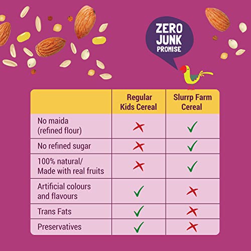 Slurrp Farm Multigrain Millets Cereal with Mixed Fruits and Rice Crispies | Rice & Jowar Cereal | 100% Sprouted Ragi | Instant Cereal | No Refined Sugar | No Preservatives | Great for Travel 300gMade with Oats and Millets Millets are organic grains by definition. Oats - rich source of fibre vitamins minerals and antioxidants Jowar - naturally gluten free grain and rich in protein Ragi - 10X the calcium of wheat and rice Sprouting ragi increases protein content and makes nutrients easier to absoSlurrp Farm Sathu Maavu | 100% Natural Multigrain Health Mix with The Goodness of Ragi Dals & Almonds | No Salt No Sugar No Milk | 200gIngredients: Ragi Jowar(Sorghum) Foxtail Millet Moong Dal Bengal Gram Brown Rice Almond Flour Cardamom powder Vitamins and Minerals How to Use: 1. Add 1/2 cup of water or milk into a pan 2. Add 3 level table spoons (30 gms) of Sathu Maavu mix 3. Mix well to remove the lumps 4. Cook on a medium flame for 3-5 mins and stir continuously to avoid lumps 5. Cool to room temperature and feed immediately | Once the pack is opened transfer the contents to an airtight container store in cool dry place or in a refrigerator | At Slurrp Farm brand made by 2 Mothers we are passionate about raising awareness of healthy eating for children and giving busy parents like us the convenience needed in terms of being able to find food options which are as good as what we would make at home.