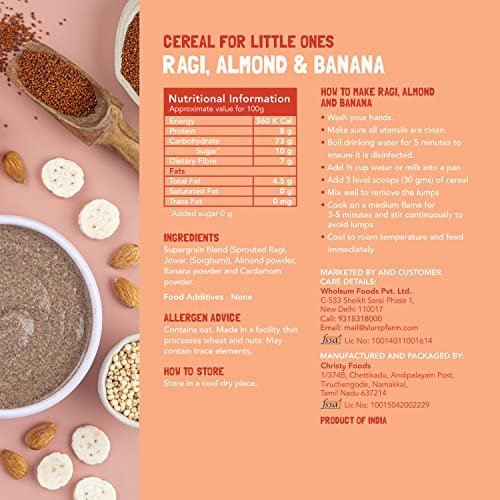 • Contains 50g each of Sprouted Ragi Ragi Almond Banana Cereal Strawberry Cereal & Sathu Maavu Porridge