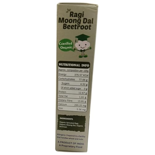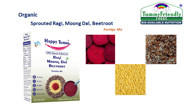 Tummy Friendly Foods Certified Organic Sprouted Ragi, Moong Dal, Beetroot Porridge Mix | Sprouted Ragi Powder For Little Ones | Available in Trial Baby Packs too | Shelf Life 6 Month | 200g