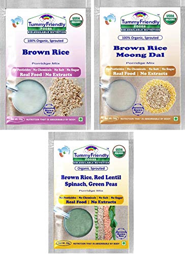TummyFriendly Foods Certified Organic Brown Rice Porridge Mixes | Rich in Gamma-Aminobutyric Acid (GABA), Protein | Made of Organic Sprouted Brown Rice | No Sugar, No Salt, No Chemicals, No Pesticides & No GMO | 3 Packs, 50g Each