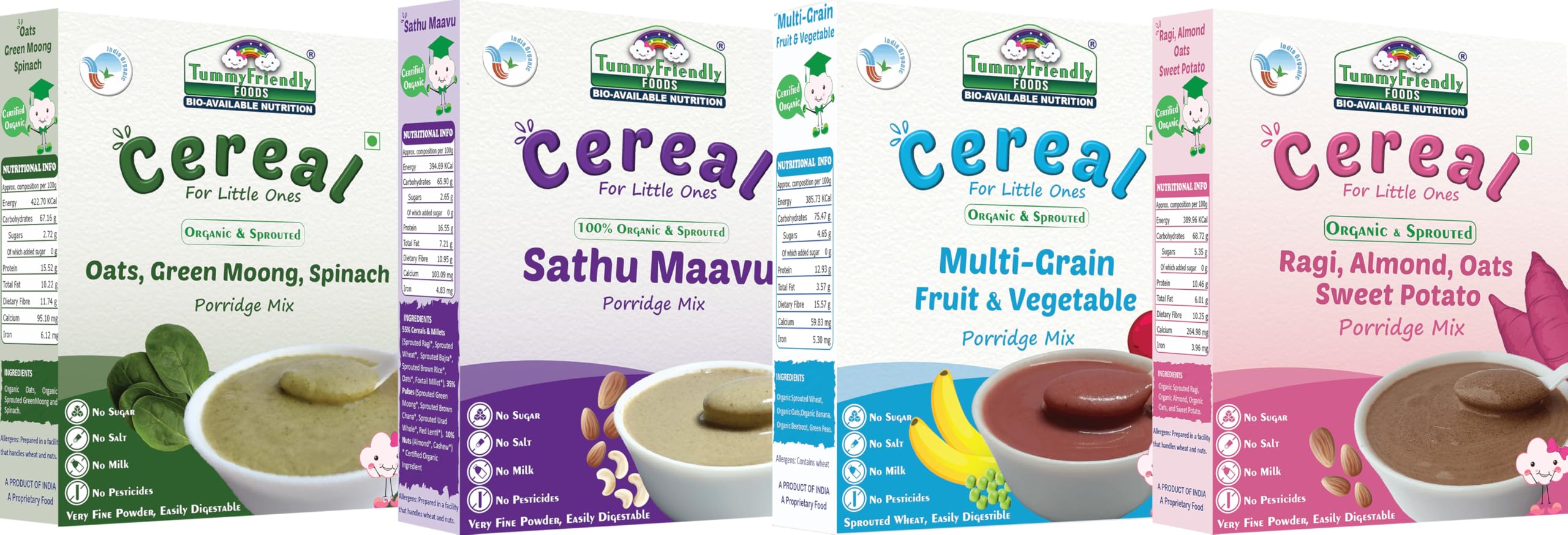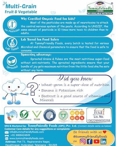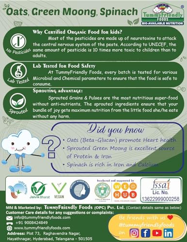 TummyFriendly Foods Certified Organic Sprouted Porridge Mixes Combo Packs With Oats | Made of Organic Sprouted Ragi Powder, Organic Sprouted Whole Grains, Organic Sprouted Pulses, Fruit, Vegetables and Nuts For 8 Month Baby | Maximum Possible Nutrition Fr
