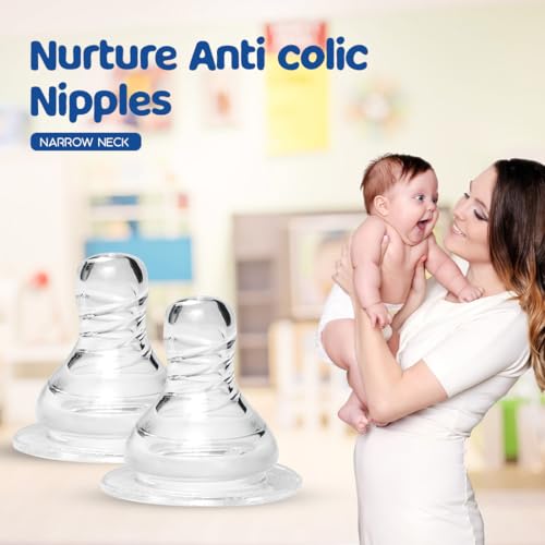 BUMTUM Nurture Anti Colic Teat/Nipple for Narrow Neck Bottle |4pcs- Large Size |Bottle Nipple for Baby, 6m+ | Soft & Flexible Silicone| Leak Proof, Bpa Free